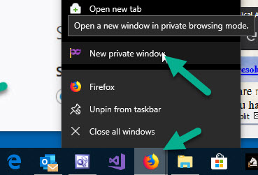 After installing FireFox, you can use it in normal mode or if you want more privacy, then right mouse click on the icon and select "New private window" which will give additional privacy and all sites will not be kept in your local computer history. Note: